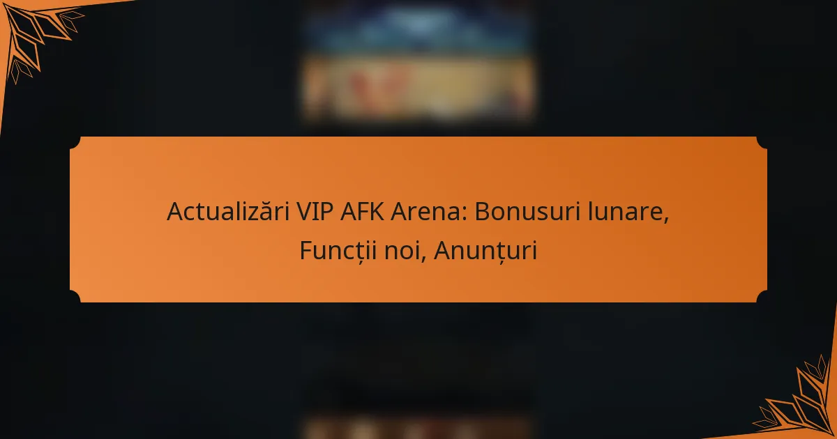 Bonusurile lunare VIP din AFK Arena oferă recompense exclusive jucătorilor care se abonează la programul VIP, îmbunătățindu-le semnificativ experiența de joc. Prin achiziționarea unei membri VIP, jucătorii obțin acces la o gamă de resurse în joc, beneficii și bonusuri pe niveluri, inclusiv eroi unici și monedă, care nu sunt disponibile jucătorilor non-VIP.